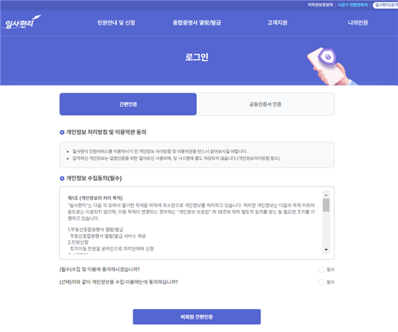 확인시 로그인이 필요한데 간편하게 비회원으로 인증이 가능하니 공동인증서 등이 어려운 경우 이 방법을 이용하시면 편할 것 같습니다.